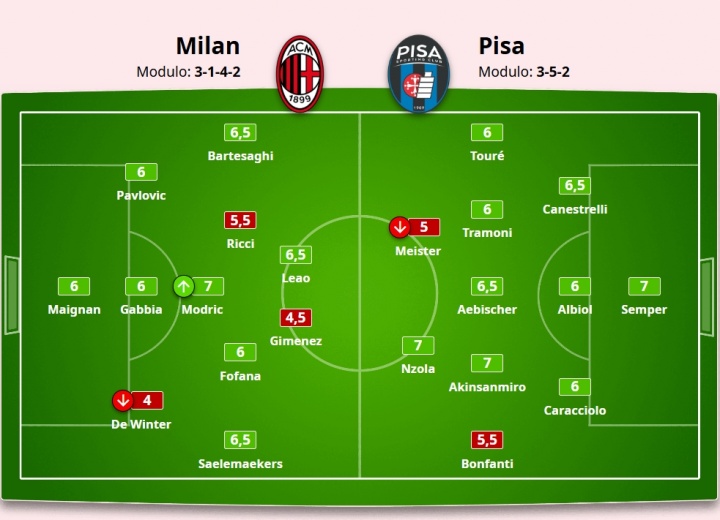 10月25日讯 AC米兰2-2绝平比萨,赛后米体对米兰将帅的推崇进行了打分。