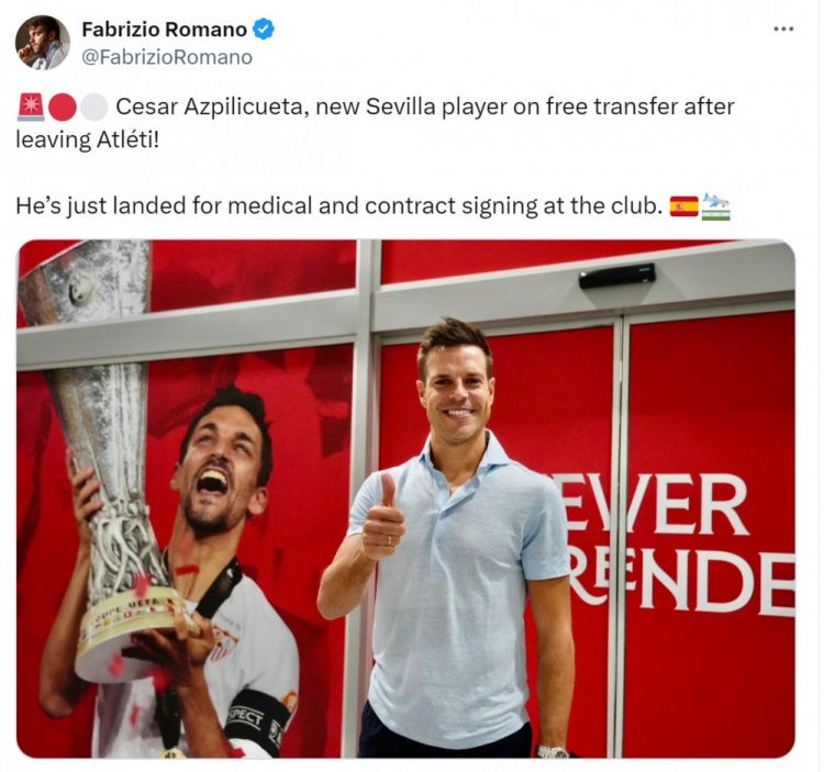 阿斯皮利奎塔今夏离开马竞,成为目田球员,罗马诺涌现,这位36岁的西班牙后卫将免签加盟塞维利亚。