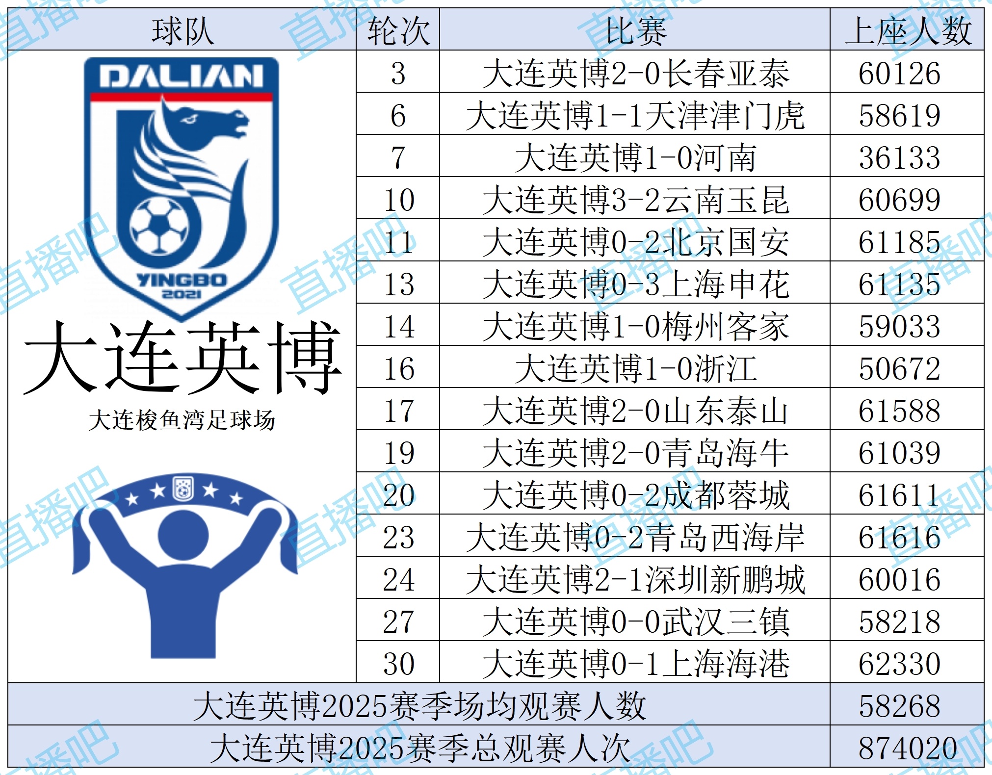 图:2025赛季大连英博赛季不雅赛东说念主数情况