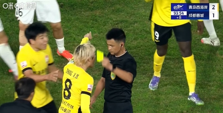 10月26日讯 蓉城vs西海岸补时阶段,周定洋剪刀脚飞铲激发两队冲破!最终张修维、周定洋各吃一黄!VAR莫得介入!
