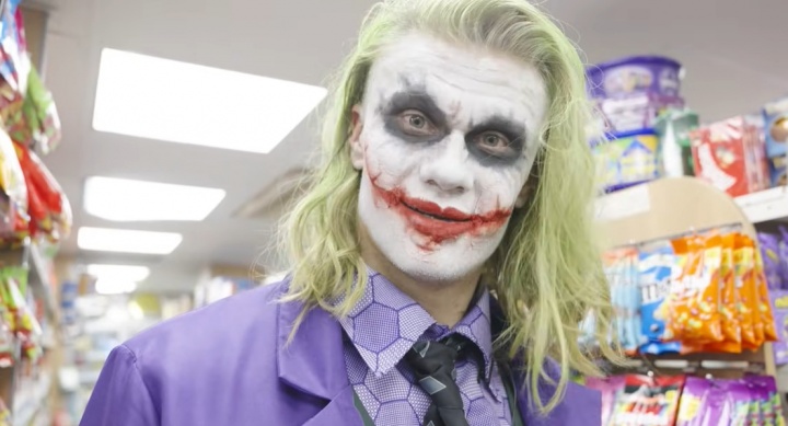 11月01日讯 万圣节驾临,哈兰德扮成“怯夫”去商店为我方的孩子买尿布,被简易认出。
