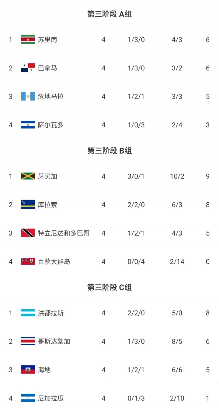 若在第5轮牙买加治服特立尼达和多巴哥,同期库拉索输给百慕大,牙买加将成为这四支球队中首个锁定平直晋级履历的军队。