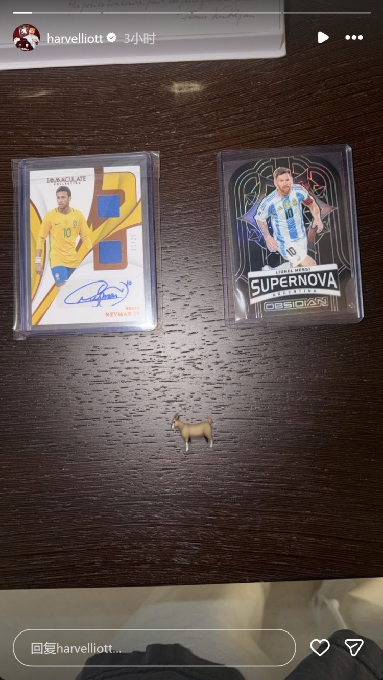 价值几何?埃利奥特社媒晒梅西、内马尔球星卡:GOAT