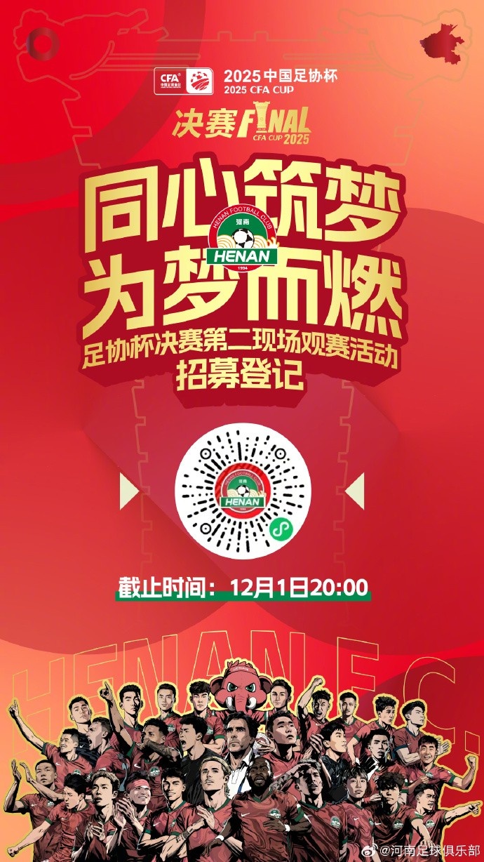 荣耀征程,决战在即!2025足协杯决赛的战饱读行将擂响,这是咱们举座河南球迷的紧要日子!为凝合八方豫情,为球队加油恭维,让每一份怜爱皆有归处,现面向五湖四海,阐明开动2025足协杯决赛第二现场不雅赛步履招募!