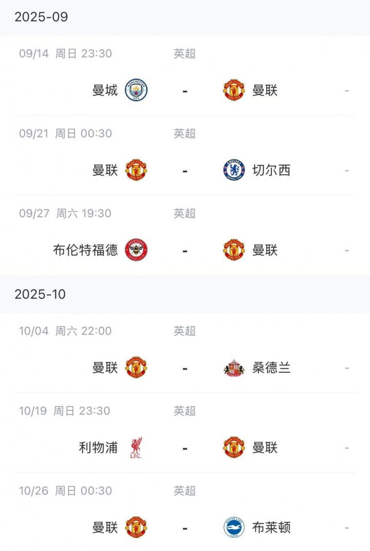 能拿几分?曼联赛程:9月客战曼城、主场战切尔西,10月踢利物浦