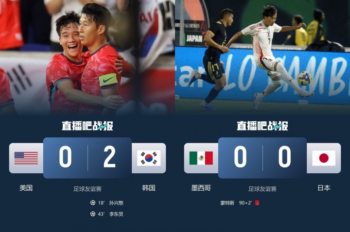 09月07日讯 当天足球友谊赛,韩国2-0打败好意思国,日本0-0墨西哥。日韩1胜1平保执不败,涓滴不惧北好意思劲敌。