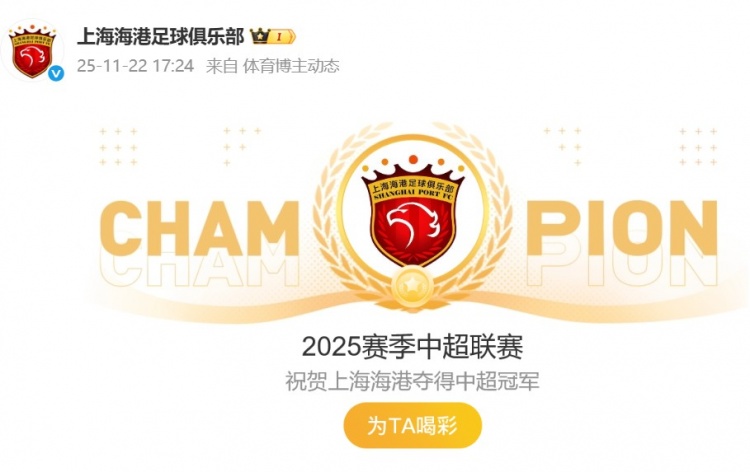 道喜!海港官博动态更新为“2025赛季中超联赛冠军”