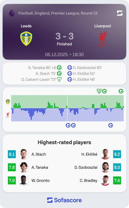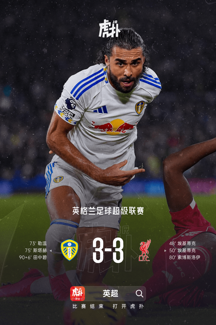 虎扑12月06日讯本轮英超,利物浦客场3-3遭利兹联绝平。