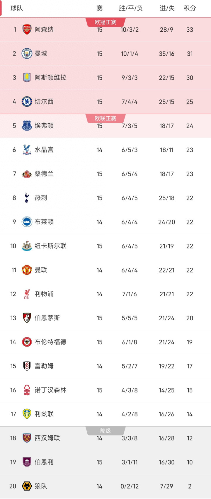 25/26赛季英超第15轮赛事已斥逐多场对决,积分榜方式迎来关节变动。阿森纳以33分仍居榜首,但逾越上风缩至2分;阿斯顿维拉豪取7连胜后积30分升至第三;曼城31分位列第二,与领头羊仅差2分;热刺、埃弗顿凭借本轮告成排行稳步攀升,切尔西则际遇三轮不堪,争四款式愈发恐忧 。以下是本轮多场焦点战的详备战况。