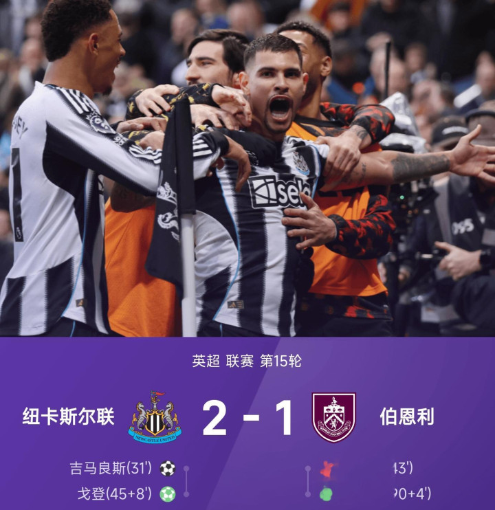 纽卡斯尔联主场迎战伯恩利的对决,全程充满升沉与看点,最终喜鹊凭借上半场树立的上风,2-1险胜敌手,延续四轮不败战绩,积分来到22分,置身争四梯队边际。