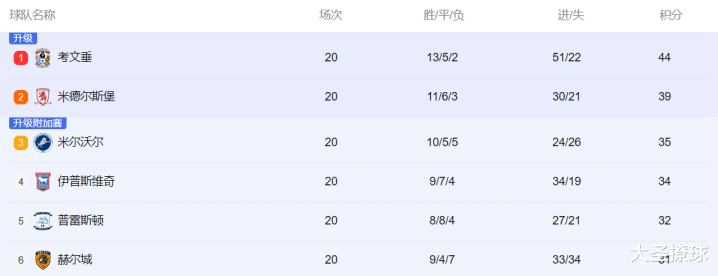 现在位居积分榜次席的米德尔斯堡应用这个契机将与榜首的差距松开到5分,他们在第20轮以2-1打败查尔顿。固然依然稳居榜首,但考文垂照旧丧失了此前所建造的显然上风。