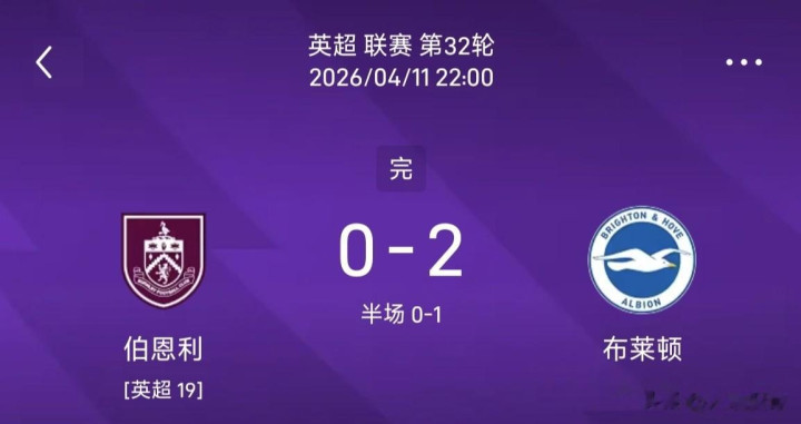 全场赛事 ,上半场结束前魏费尔推射打破僵局。下半场赛事 结束前,魏费尔远射破门,连进两球的同时帮助布莱顿锁定本场胜局。最终,布莱顿客场应战 2-0战胜伯恩利。