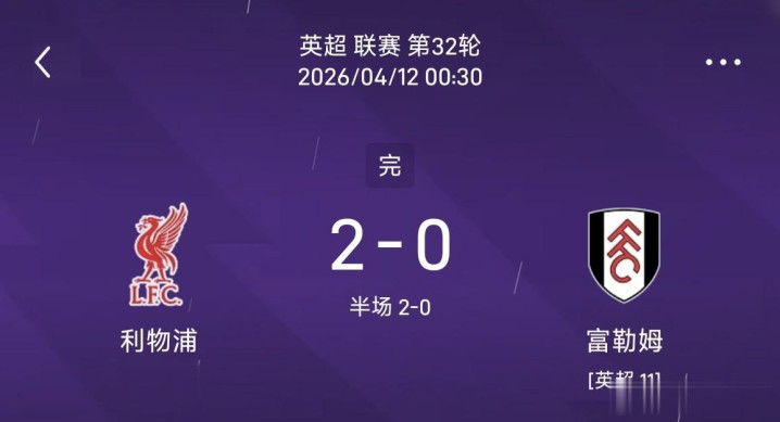 利物浦2-0富勒姆