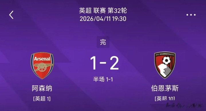 阿森纳1-2伯恩茅斯