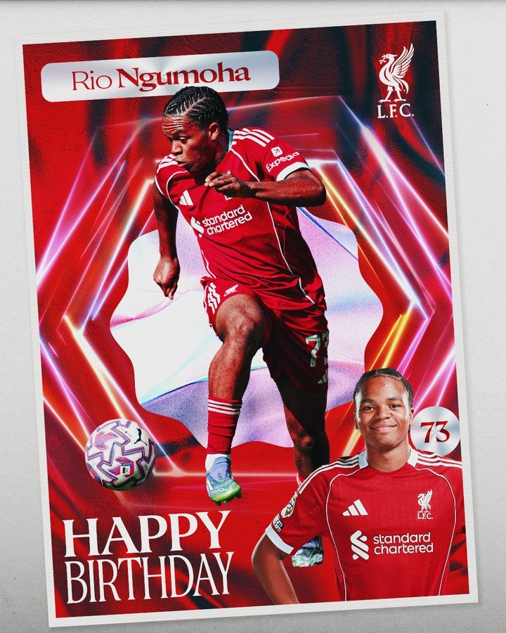 利物浦官推写谈:“17岁生辰忻悦,恩古莫哈!”