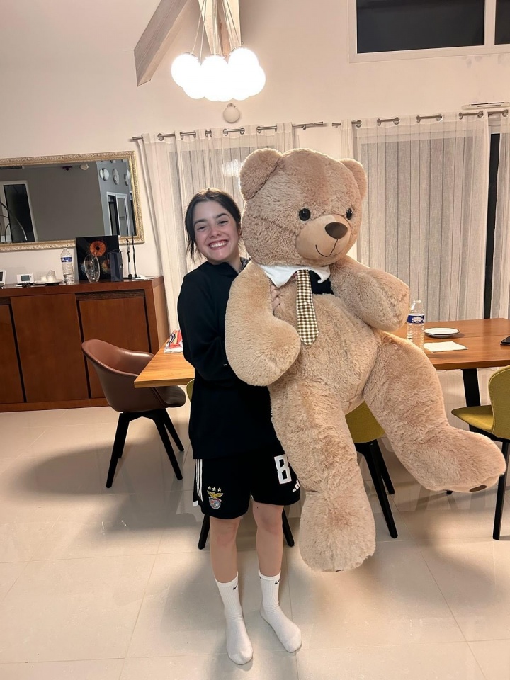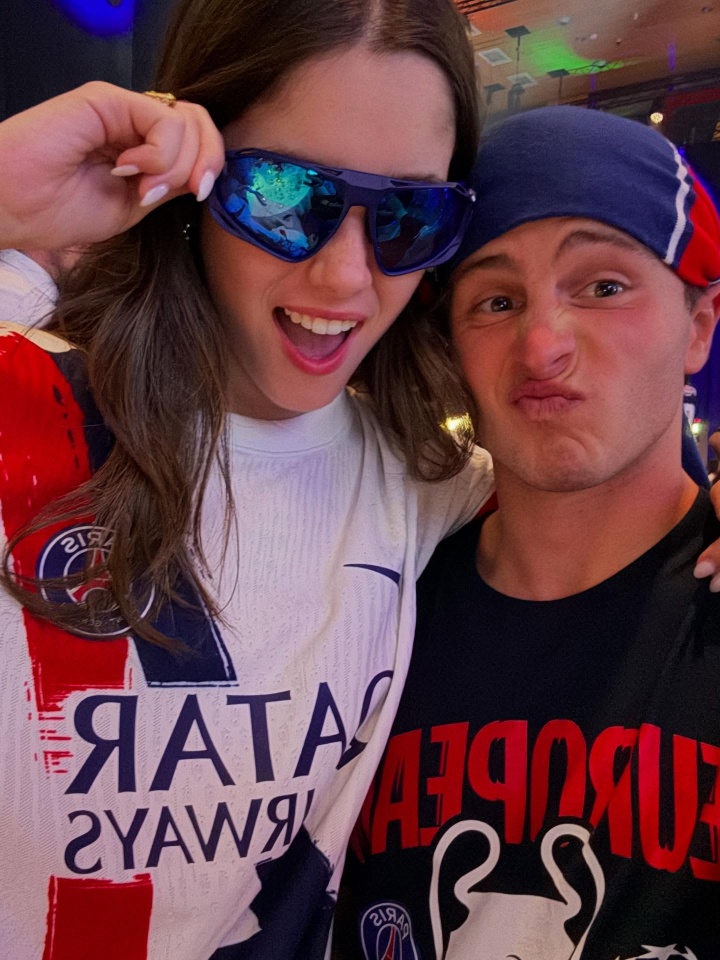 巴黎中场若奥-内维斯在社媒晒照,为女友马达莱娜庆祝她的20岁生辰,女友也在驳倒区与其互动。