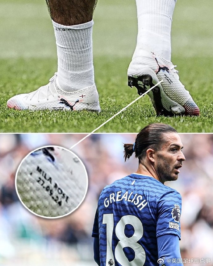 格拉利什昨日比赛衣着一对印有犬子名字的球鞋,赛中送出2次助攻