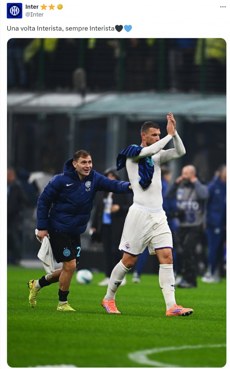 请安!国米官方社媒赛后晒哲科像片:一日蓝黑,终身蓝黑
