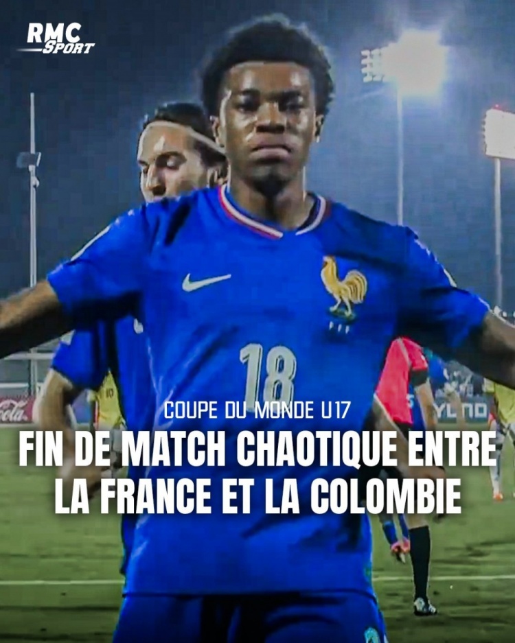 在昨晚进行的U17天下杯1/16决赛,法国U17队2-0礼服哥伦比亚U17队,成功晋级16强。但赛后两队发生打破,RMC宗旨,其时别称法国球员在成功后寻衅哥伦比亚球员,并遭到敌手的追打,之后激发两边更大范畴的混战。看台上的法国球员的父母和支属、以及至少别称牙东说念主也过问球场参与打破,而安保东说念主员试图戒指住所有这个词东说念主。