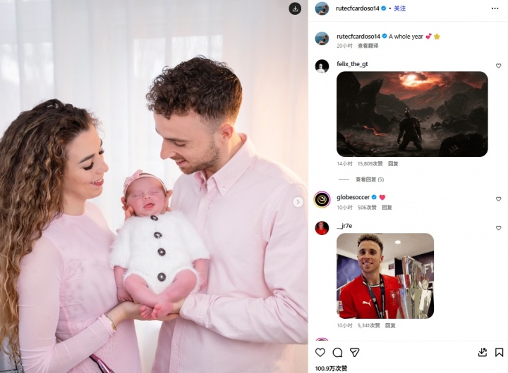 11月27日讯 昨日若塔的小犬子(第三个孩子)年满一岁,若塔遗孀在社媒发文,贴出多张图片记念犬子的生辰,其中包括三东谈主的合照,以及多张若塔生前体恤孩子的相片。
