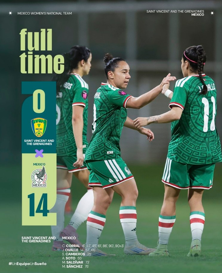 宇宙杯预选赛墨西哥女足14-0狂胜,科拉尔一东谈主打进7球