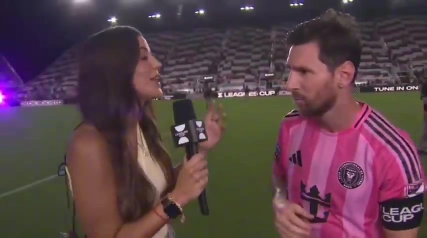 08月28日讯 定约杯半决赛,梅西梅开二度,迈阿密海外淘汰奥兰多城晋级决赛。赛后梅西汲取了现场apple tv记者Antonella González的采访。
