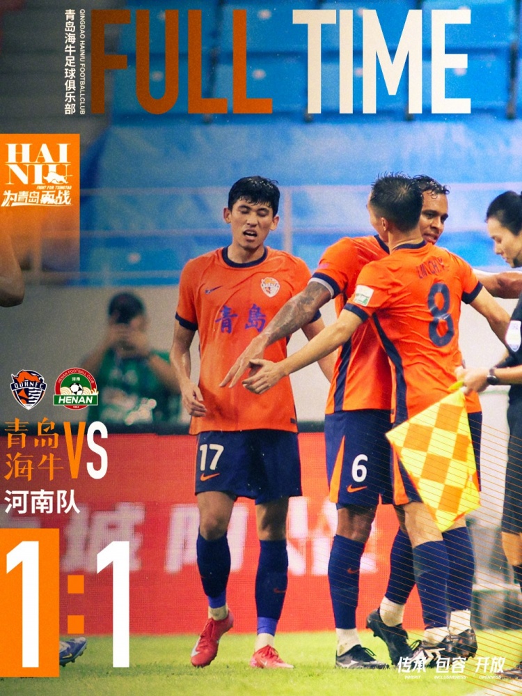全场比赛为止,青岛海牛1-1战平河南队,林创益为球队打入一球。
